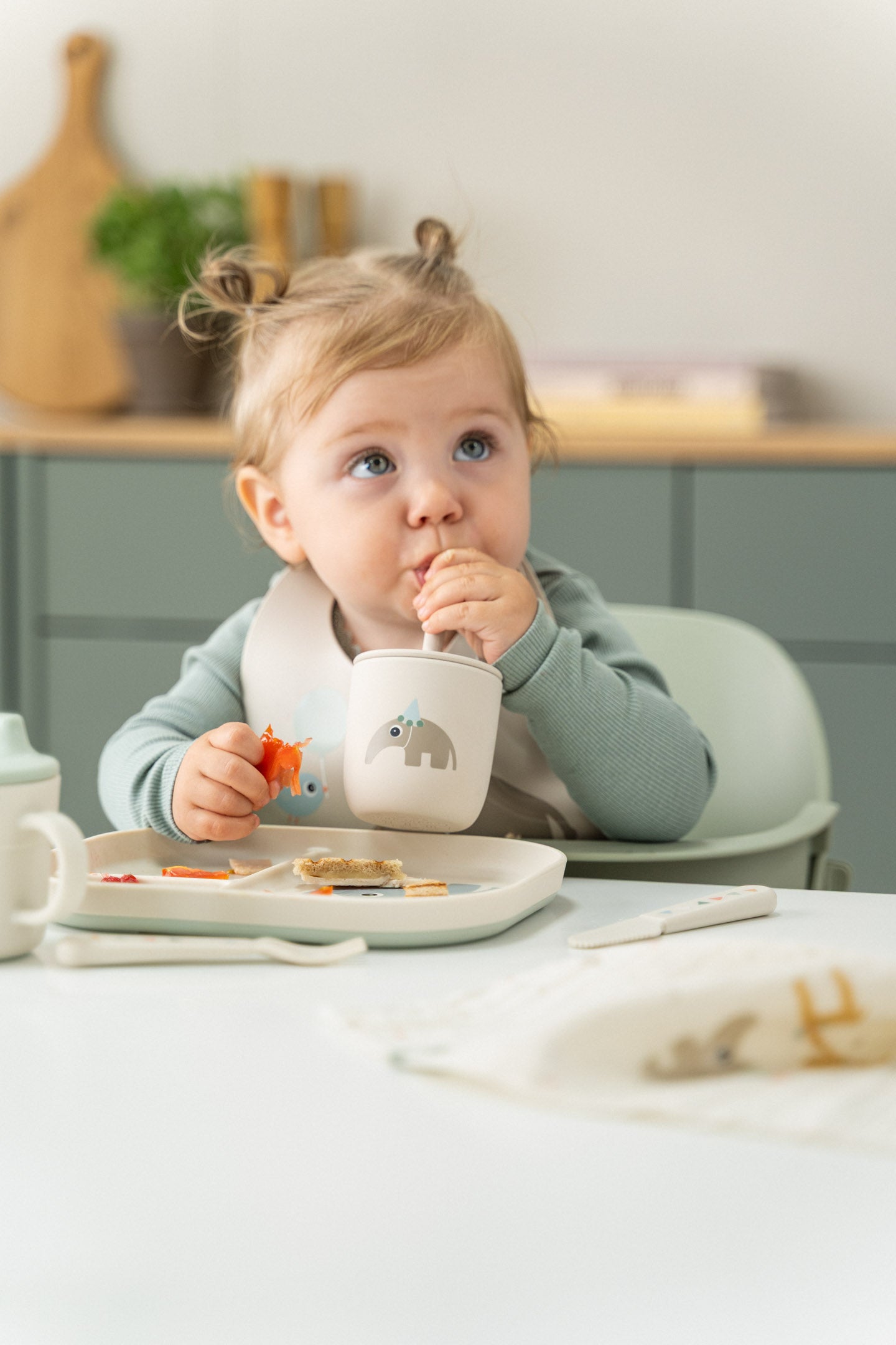 Easy-grip cutlery helps tiny hands hold on and keep trying. Plates with compartments create gentle structure, making it easier to explore new tastes in their own rhythm.
